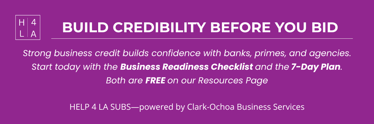 Download the Business Readiness Checklist and the 7-Day Plan today to start building the financial readiness every contractor needs to show credibility with agencies and primes.
